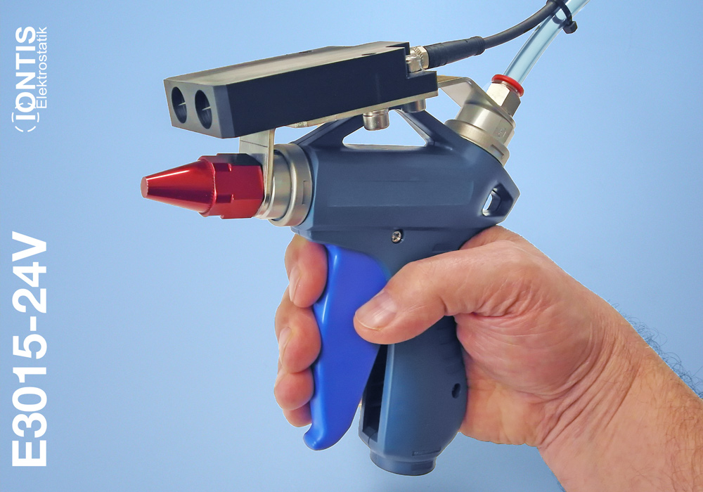 The E3015-24V cleanses and neutralises efficiently with air connection and ioniser on the top. It has an ergonomic grip also suitable for smaller hands.