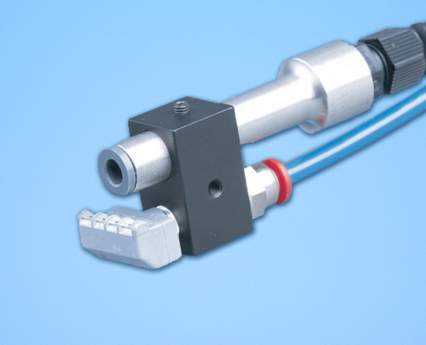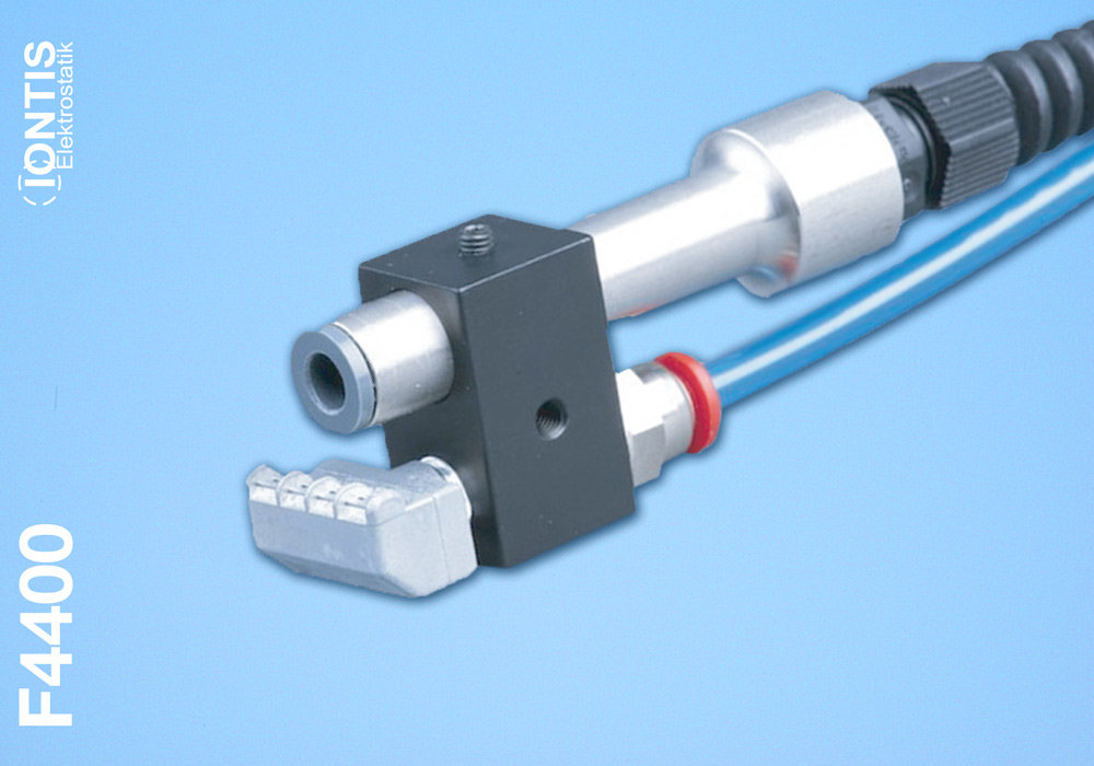 The main feature of the F4400 is the sophisticated nozzle head, offering advantages with its 90° jet angle at tight installation situations and also supplying a fine fan-shaped air stream and, is thus very popular in applications with neutralising cleaning and separation of sheet material.